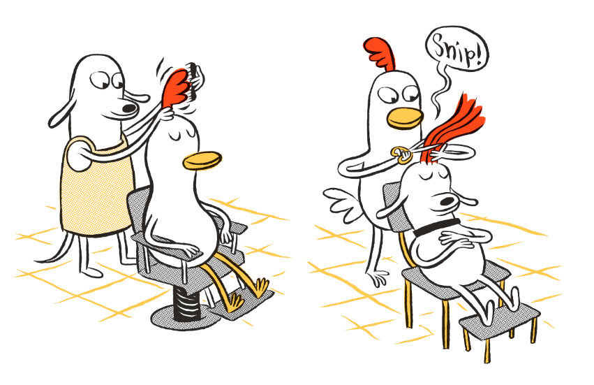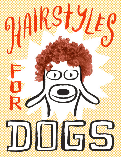 A Riso-printed three-color 'zine on the subject of hairstyles. The 'zine is two-sided, so one side is